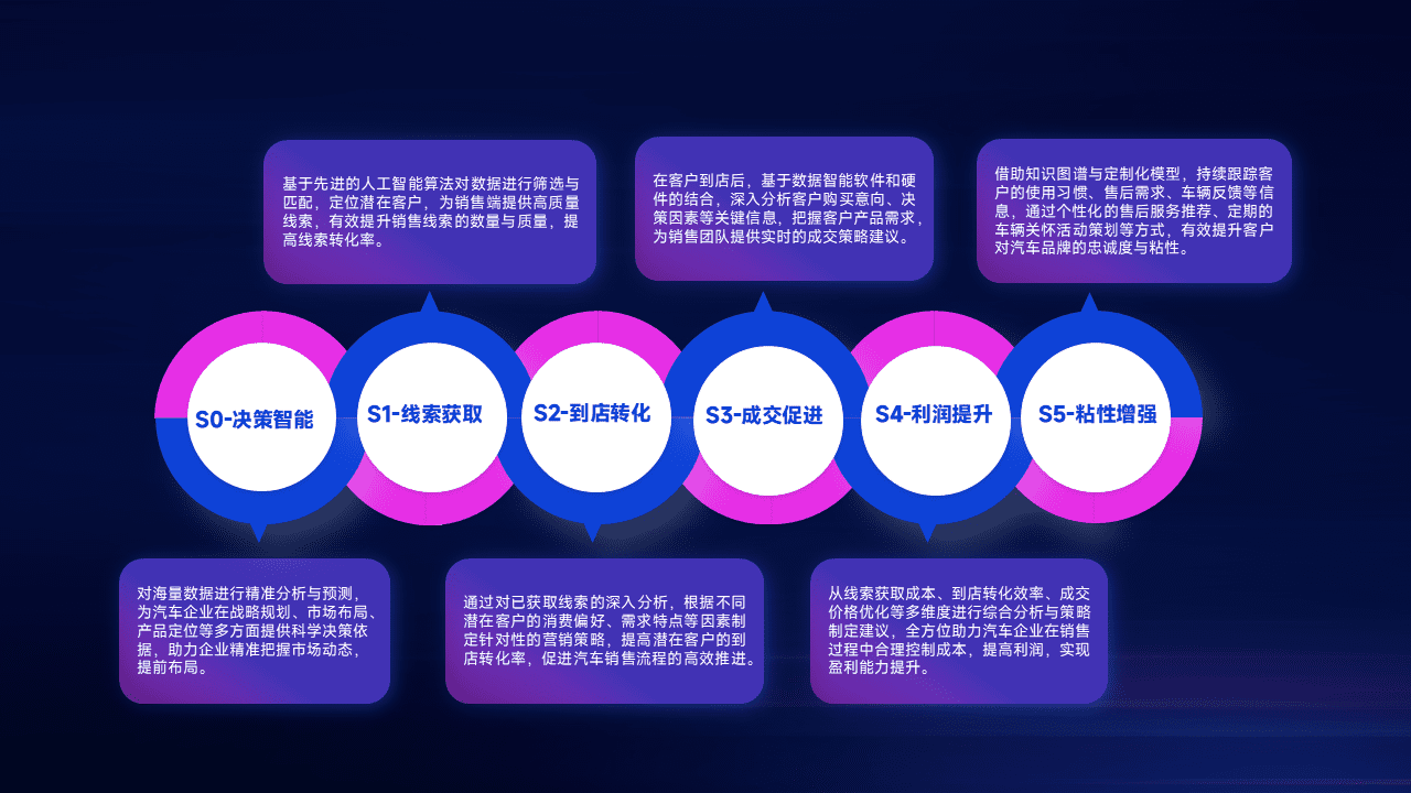 通过拓宽潜在客户来源、、、、优化线索分配并提高到店转化率,,以增强销售效率。。。同时,,,利用线索数据不断优化分析模型,,,有效提升转化率,,,,扩大营销影响力。。